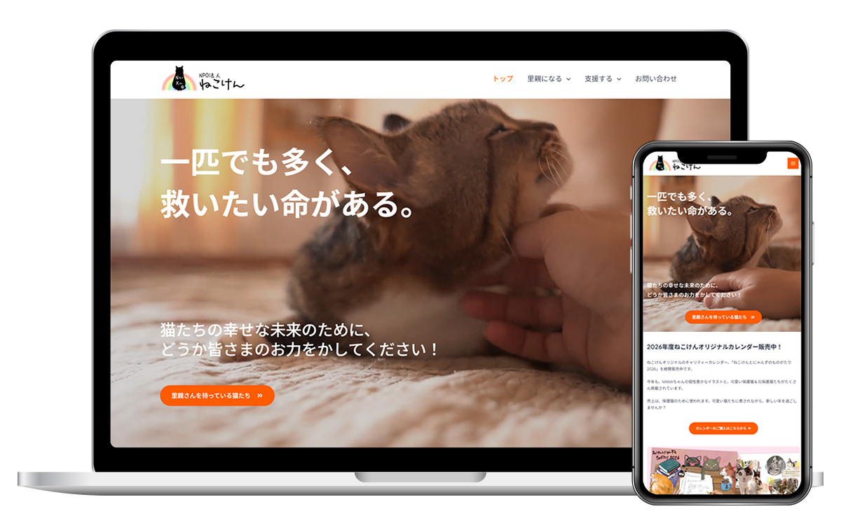 保護猫活動を行う団体の公式サイトを全面リニューアル。活動の見える化と支援導線の強化を希望。